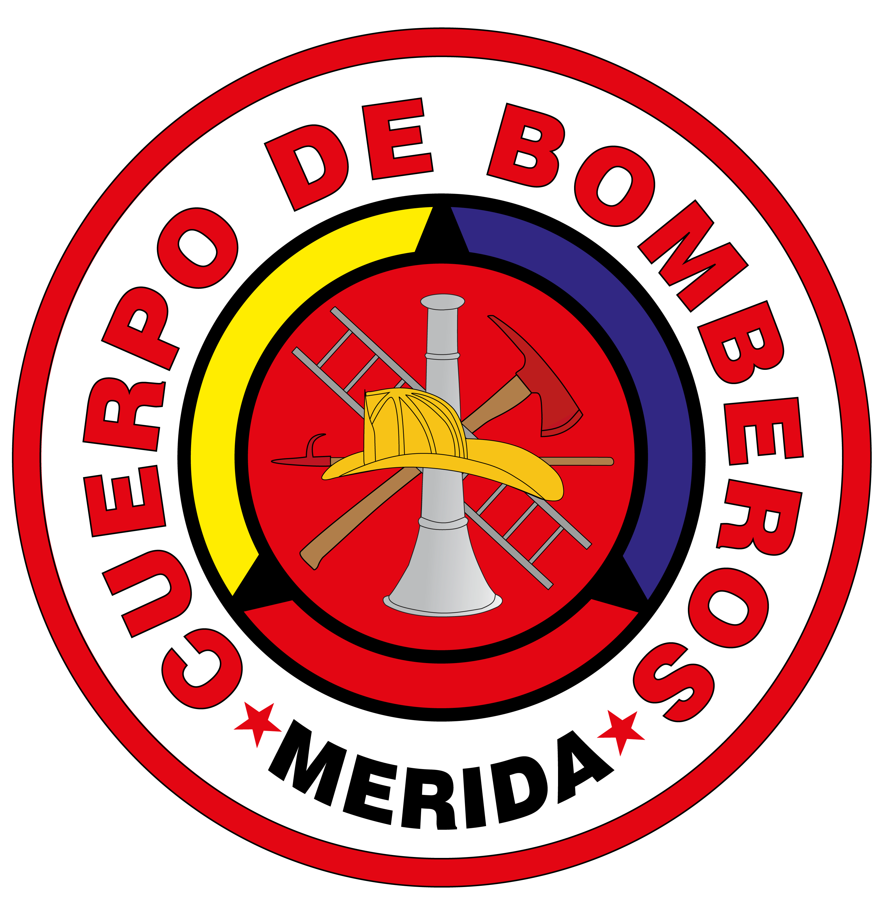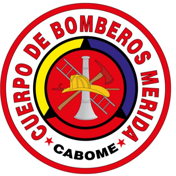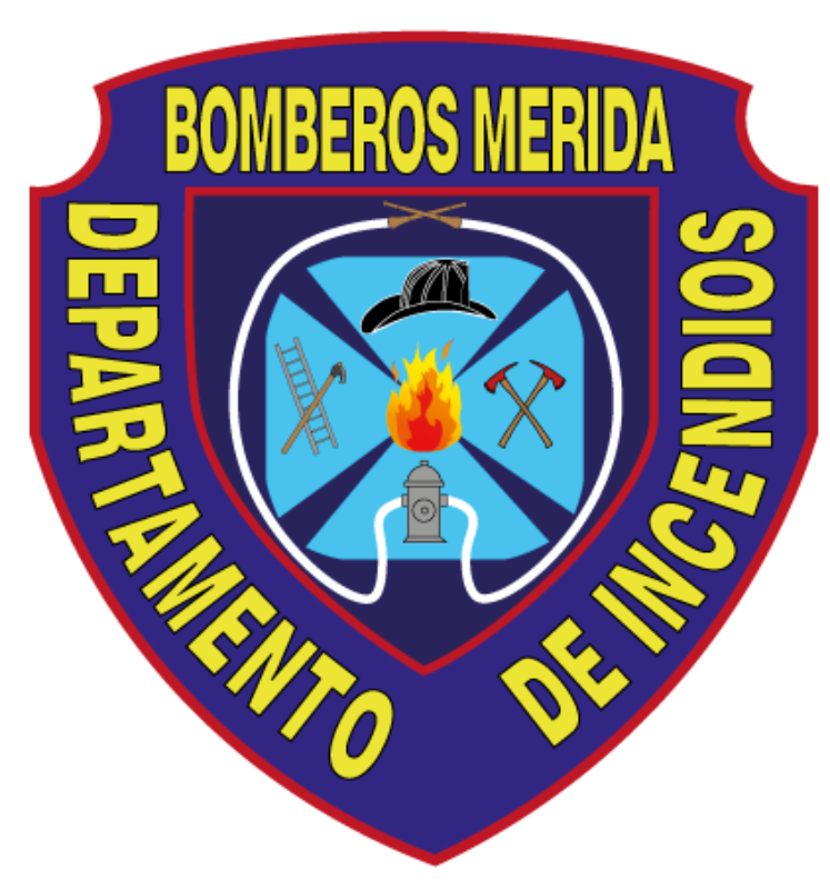 Tipografía y anillo perimetral: En la parte inferior, se puede ver "MÉRIDA", y en la bordura blanca, "CUERPO DE BOMBEROS". Estas dos inscripciones están separadas por dos estrellas de cinco puntas. La memoria, la dirección y el honor de los funcionarios que han trabajado con distinción para la entidad merideña están simbolizados por estas estrellas.